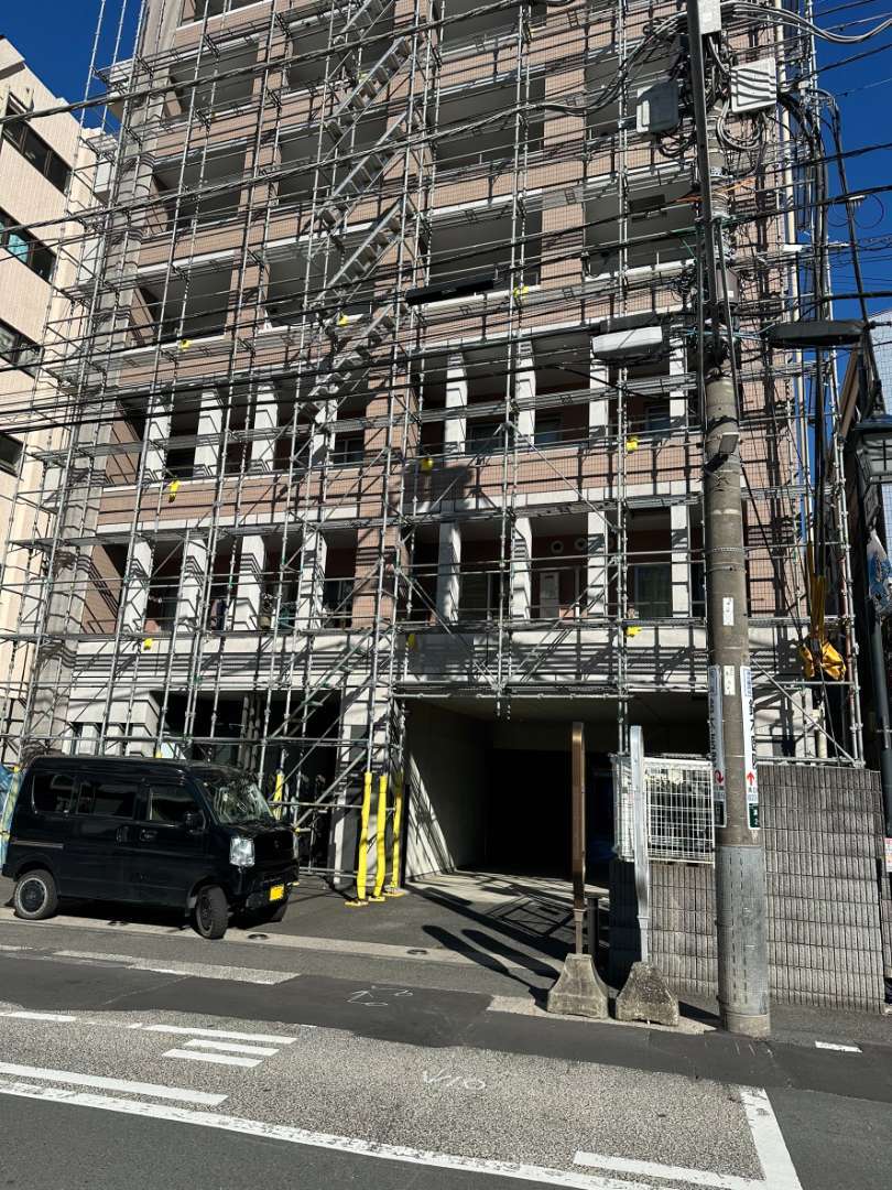 外壁塗装や屋根工事など、建物全体を覆う大規模な足場や、部分的な足場を設置する作業です。